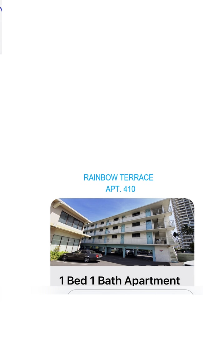 Rainbow Terrace (2873 S. King St., Apt. 410) - 1 bedroom 1 bath in Moiliili with 1 assigned covered parking; approximately 570 sf interior and 80 sf lanai. Close to UH, shopping and restaurants and easy access to the H1 freeway and bus lines. Building features secured entry, community washers and dryers and trash shoot on each floor. Unit has a refrigerator, gas range/oven, vent hood, pantry, A/C, tile floors, shower stall and linen closet. Building does not allow smoking/vaping or pets. Rent is $1,500 per month and includes gas, water, sewer, and trash. Tenant pays for electricity, cable, and internet. Minimum 6 months lease. Please contact Shirley to schedule a showing or for further information. Unit is available for immediate occupancy.