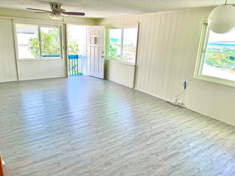 A well-maintained 3-bedroom, 2-bath home in a great neighborhood. Great location for military families as it is close to the military base and zoned for good public schools, this home offers both convenience and a great place to settle in. Smaller third bedroom is perfect for a home office, nursery or flex space. No AC, but the home is naturally breezy with good airflow and ceiling fans throughout. Patio deck with mountain view and breezy trade winds. Property has a separate entrance leading to upstairs unit. 2 available parking stalls (1 covered, 1 uncovered). No smoking, no pets. Pet Policy negotiable (service dogs, pet deposit) $3500/month includes water/sewer & electricity. Minimum 1yr lease. Application Fee applies