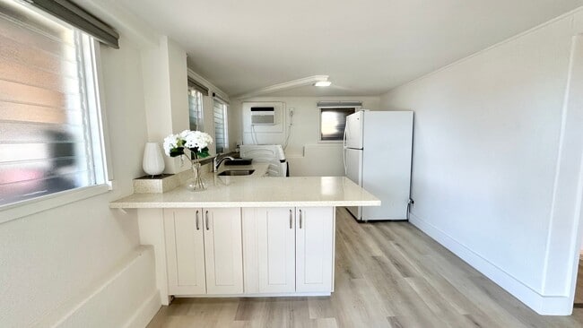 Available now! Located in the highly desired Maunalani Heights (Honolulu). This Studio (500+ sqft) with 1 Bath is NEWLY renovated and completely separate from the main house. Appliances include: Hot Plate Burner, Refrigerator, Window AC, and its own Washer/Dryer. Enjoy the beautiful sunrise, sunset, ocean, and mountain views. Conveniently located and close to shopping areas (Kaimuki & Kahala Mall), many restaurant options, Waikiki beaches, UH Manoa, Chaminade, KCC, and more! Tenant is responsible for Electricity and Water/Sewer (split with main house) and Cable/Internet. Sorry, no pets and no smoking. Proof of Renter's Insurance required. STATUS: Vacant AVAILABILITY DATE: NOW PET RESTRICTIONS: Sorry, no pets allowed. SMOKING: No smoking is allowed on the premises. MOVE-IN/HOLD FEE: Approved applicants will pay prorated monthly rent plus 1 mo. security deposit for their move-in date. APPLICATION INSTRUCTIONS (HOW TO APPLY): - Ensure that you have all the required documents handy (see application requirements) - Click Apply Now - Complete the Online Application Form - Pay the Application Fee w/ Credit or Debit Card REQUIREMENTS AND CRITERIA: View our Rental Criteria Here: AREA INFORMATION: Maunalani Heights (Honolulu) FLOORING: Vinyl Flooring GARAGE/PARKING: No parking included. KITCHEN/LAUNDRY APPLIANCES INCLUDED: Refrigerator, Hot Plate, Washer/Dryer, Window AC PROPERTY TYPE: Single-Family House / separate studio unit from main house UTILITIES INCLUDED: Trash/Refuse. Tenant to pay for all other utilities (including Electric, Water/Sewer - to be split and Cable/Internet) YEAR BUILT: 2000 *Application, Lease Terms, & Fees* APPLICATION FEE: Non-refundable, $50 per applicant 18+ years old APPLICATION TURNAROUND TIME: 2-3 business days LEASE LENGTH: 1 YEAR LEASE TO PURCHASE OPTION/SPECIAL LEASE PROVISIONS: None available PROPERTY MANAGER: Kiani M. Kaahaaina (R) | Elevate Hawaii Management LLC **All information is deemed reliable but not guaranteed and is subject to change. Tenant to verify all material facts including but not limited to room sizes, utilities, schools, association rules, community amenities, fees, and costs, etc.**