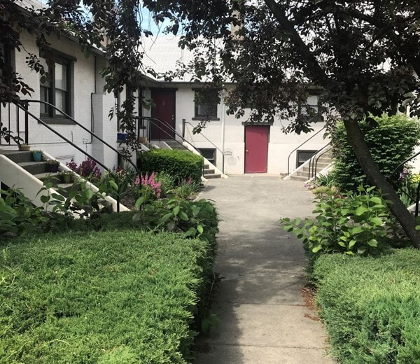 Gorgeous courtyard setting with cottage-style interior. Kitchen equipped with a pantry, updated appliances, and select units offer a built-in kitchen table with bench seating. Large windows allow abundant natural lighting, and spacious living rooms.
