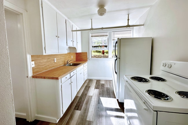 Discover Arbor Court - your pet-friendly oasis nestled in the heart of tranquility. Tucked away at a charming cul-de-sac, this cozy community boasts lush greenery and vintage clawfoot bathtubs, adding a touch of timeless charm to your home. Some units even feature a delightful kitchen nook with a picnic table, perfect for enjoying sunny meals. With an abundance of natural light and ample storage space, each unit is designed for your comfort. Convenient shared laundry facilities make life a breeze. Plus, Arbor Court's prime location near downtown ensures you're never far from the action.