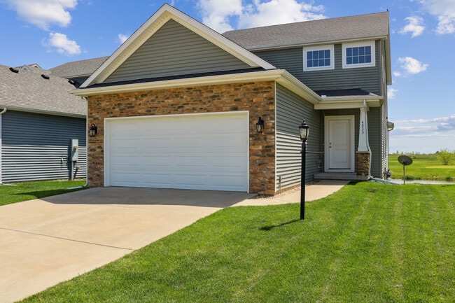 Welcome to your dream home nestled in the desirable Legends of Champaign Subdivision in Southwest Champaign. This waterfront home offers multiple panoramic serene views of the Legends Executive Golf Course. An open concept floor plan and private back deck allow for many opportunities to host gatherings. First floor master suite features a walk-in closet and a full bath with custom sliding barn door, double vanity and tiled shower. Kitchen features eat-in granite countertops, stainless steel appliances. Drop zone & Laundry room off garage entry. Upstairs, there is a bonus area with great potential as a home office. Two sizable bedrooms share a second full bath featuring double vanity & a shower/bathtub. The spacious daylight basement is partially finished, could be a rec room or playroom. Legends community offers a clubhouse, pool, entertainment and dog park for an additional annual fee as well as a Daycare facility. Great access to I-57, close to Carle at the Fields and YMCA. House is equipped radon mitigation system, range hood 2023, new deck painting 2024. Broker owned.