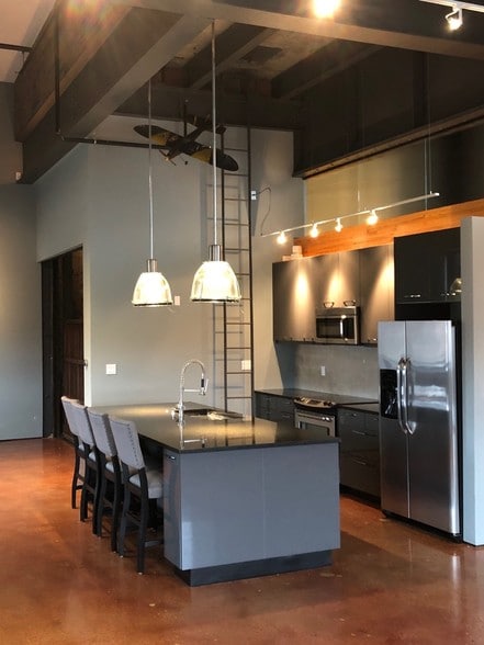Just steps from the heart of downtown Champaign, this true in-city loft combines sophistication, modern elegance, and industrial style with all the right spaces. A well-appointed kitchen with stainless steel appliances and large granite counter tops open up into a spacious living area featuring concrete floors and wall-to-wall windows allowing tons of natural light. An additional living space in the loft allows for quiet relaxing and privacy. Hardwood floors, exposed steel trusses, industrial lighting, and a private balcony with views of downtown Champaign make this space a must-see. This unit is blocks away from all the arts, festivals and downtown life that Champaign has to offer.