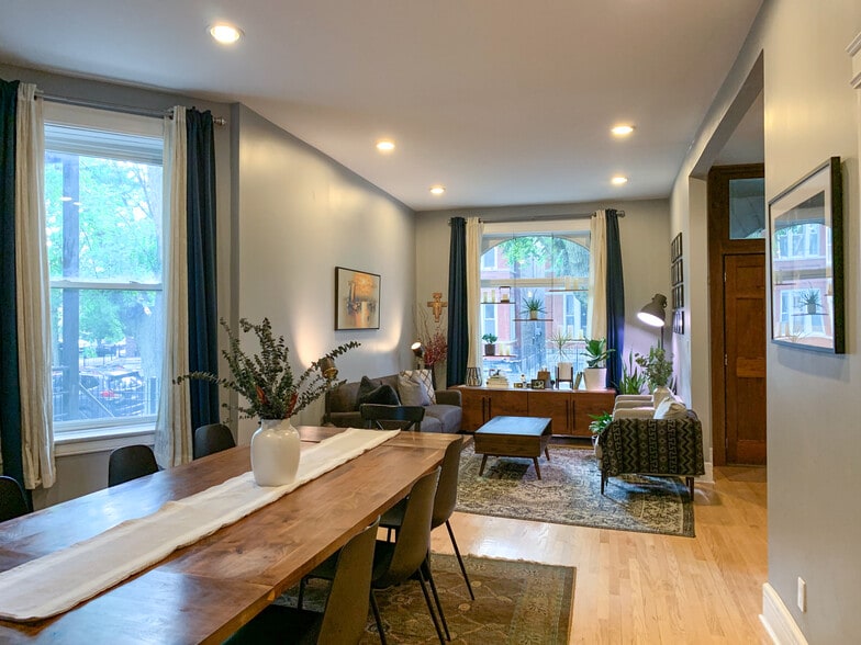 DescriptionIncredibly luxurious 2 bedroom unit that is newly gut-rehabbed! Chef’s kitchen includes custom built floor-to-ceiling cherry cabinetry, statement range hood, quartz countertops, butcher block, and stainless steel appliances including paneled dishwasher. Bedrooms have been enlarged and have huge closets. Primary closet is lined with custom Elfa shelving. Completely renovated bathroom features a large, walk-in shower with rainhead fixture. With custom built-ins throughout the unit, there is plenty of storage. Apartment is a first floor unit with private walk-up entrance and is great for entertaining. The unit boasts 10 foot ceilings, hardwood floors, large living room, and separate dining room. Smart home technology throughout including automatic locks, Nest thermostat, and Nest smoke detector. Enclosed back porch provides even more storage space and in-unit laundry. Tenants have access to backyard garden, chiminea, and grill area for outdoor living. Ideally located in a beautiful greystone walk-up that is walking distance from Blue line, The 606, Wicker Park dining and nightlife, and one of the city’s largest parks, Humboldt Park. $2400/mo available September 15, 2022. 7 month lease with option to renew for 12 months at end of lease. Specifics: 2 bed, 1 bath. Force heat. Air conditioning. Gas stove. Water and garbage/recycling included. Washer and dryer in unit. Enclosed porch. Parking available for an additional fee. Application fee will cover a credit check and background check. The fee will be credited back in first month’s rent upon acceptance. Security deposit required of one month’s rent.