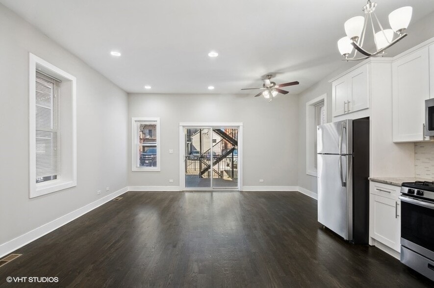 Step right onto your private Deck and start grilling! Available for July 1st start date. Stunning recently gut renovated Three Bed/Three bath(no need to share!) duplex in a Prime Noble Square location! Unit features brand new kitchen with granite counters, back-splash and stainless steel appliances. New bathrooms with glass enclosed showers. Hardwood floors, in-unit washer/dryer, central heat and air conditioning, 12" ft ceilings. A quick walk to restaurants, bars, the blue line & Eckhart Park. Mere minutes to the expressway, or a quick bike ride direct to the Loop. One optional uncovered tandem parking spot that can fit two cars is available for an additional $150/month. In lieu of a security deposit, there is a $300 move-in fee per person.