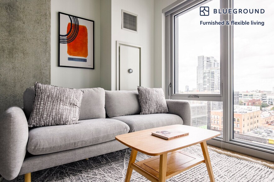 Show up and start living from day one in Chicago with this lovely one bedroom Blueground apartment. You’ll love coming home to this thoughtfully furnished, beautifully designed, and fully equipped West Loop Gate home. (ID #CHI1275) The advertised rate of $2,200/month is the lowest available price, based on a 1 month(s) and 15 day(s) stay with a move-in date of February 8, 2026. If you’re looking for a 1-year stay, the rate is $2,680/month. Rates vary depending on the duration of stay, season, and other parameters. For exact pricing and additional pricing components, please visit our website and enter your desired move-in and move-out dates. The rate is applicable when billed upfront; it can be higher if billed in multiple payments. Brokers are welcome to reach out. Were you looking for an unfurnished lease? Try Blueground instead and upgrade from unfurnished to furnished living: - Furnished at rates comparable to unfurnished - No setup or furniture costs - save thousands - Move-in ready - save time, just bring your suitcase Designed with you in mind Gorgeous furniture, fully equipped kitchen, smart TV, and a premium wireless speaker are just a few of the amenities you’ll find inside this one bedroom apartment. Ideally located in Chicago, you’ll find a lot to love outside as well. When you’re ready to relax, you’ll be happy to discover every Blueground bedroom comes with superior quality mattresses, luxury linens, and cozy towels. We handle everything so you can simply show up and start living. This apartment also offers in-apartment laundry. Sleeping arrangements Queen Bed, 63in/160cm Amenities Building amenities unique to this one bedroom apartment include an on-site: - BBQ Area - Doorman - Dryer - Elevator - Swimming pool - Washing machine - Lounge - Parking - Pets allowed Arrival and ongoing support The entire apartment is yours to enjoy! Throughout your stay, you’ll have access to our Client Experience team through the Blueground App. You can schedule additional cleanings, submit maintenance requests, and view our neighborhood recommendations with just a few taps. We’ll share all details upon confirmation of your stay. Other things to note Building amenities may have an extra cost. This Blueground apartment has flexible lease options, allowing you to book it for one month, a year, or more. Pets are welcome, though weight limits and breed restrictions apply and may incur fees. Parking is offered based on availability and is subject to a fee. We take great pride in ensuring every photo displayed is shot in our own units with our actual furnishings. That said, we regularly refresh our decor and furniture arrangement, which may differ from what’s pictured. Also note - This apartment is located on a busy street - Noise from the nearby nightlife can sometimes be heard late at night - This is a guarded building equipped with a doorman/concierge at all times [SI]
