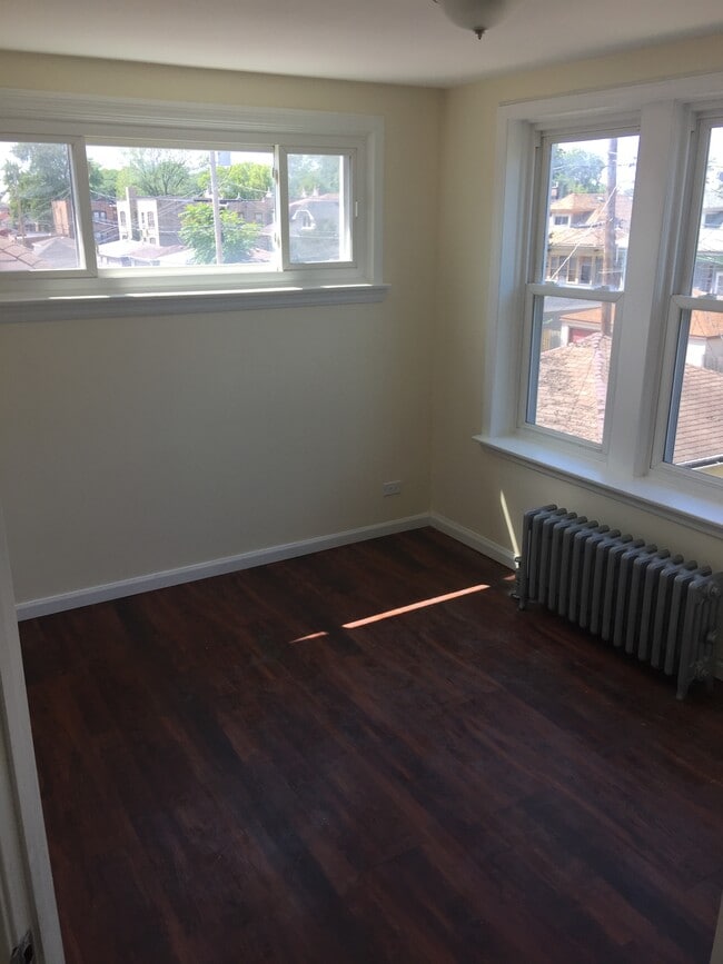 A very quiet block -mostly home owners New appliances New kitchen and bath New electrical New plumbing Walking distance to grammar school Walking distance to grocery French doors Dark wood floors Heat included in rent