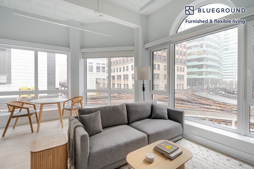 Feel at home wherever you choose to live with Blueground. You’ll love this stylish The Loop furnished one bedroom apartment with its modern decor, fully equipped kitchen, and comfortable living room with great views. Ideally located, you’re close to all the best that Chicago has to offer! (ID #CHI1237) The advertised rate of $1,850/month is the lowest available price, based on a 1 month(s) and 3 day(s) stay with a move-in date of March 22, 2026. If you’re looking for a 1-year stay, the rate is $2,140/month. Rates vary depending on the duration of stay, season, and other parameters. For exact pricing and additional pricing components, please visit our website and enter your desired move-in and move-out dates. The rate is applicable when billed upfront; it can be higher if billed in multiple payments. Brokers are welcome to reach out. Were you looking for an unfurnished lease? Try Blueground instead and upgrade from unfurnished to furnished living: - Furnished at rates comparable to unfurnished - No setup or furniture costs - save thousands - Move-in ready - save time, just bring your suitcase Designed with you in mind Thoughtfully designed with bespoke finishes, modern furnishings, and a fully equipped kitchen, you’ll enjoy that “I’m home” feeling with this Blueground apartment. Whether you’re lounging in your spacious living room streaming the latest and greatest entertainment on the smart TV or premium wireless speaker, or getting some well-earned rest on the superior quality mattress with luxury linens, you’ll fall in love with everything this The Loop apartment has to offer. This apartment also offers in-apartment laundry. Sleeping arrangements King Bed, 70.8in/180cm Amenities Building amenities unique to this one bedroom apartment include an on-site: - Dryer - Washing machine Arrival and ongoing support The entire apartment is yours to enjoy! Throughout your stay, you’ll have access to our Client Experience team through the Blueground App. You can schedule additional cleanings, submit maintenance requests, and view our neighborhood recommendations with just a few taps. We’ll share all details upon confirmation of your stay. Ideally Located This furnished rental is situated in the most dynamic and convenient place to live in Chicago, The Loop. With its endless shopping, fine dining, stunning park, river and lake views, and entertainment opportunities, everything is possible at a moment’s notice. The area is a cultural getaway for professionals and students, who can combine work with pleasure. Discover landmark buildings like the Willis Tower and The Art Institute of Chicago. Millenium Park, near Lake Michigan, is always worth a visit. The Loop is within reach of accessible transportation, offering non-stop public transit, buses, and taxis. Union Station is approximately a 10 minute train ride. Other things to note This Blueground apartment has flexible lease options, allowing you to book it for one month, a year, or more. Please keep in mind that this is a walk up building. We take great pride in ensuring every photo displayed is shot in our own units with our actual furnishings. That said, we regularly refresh our decor and furniture arrangement, which may differ from what’s pictured. Also note - This apartment's central location means it can be noisy at times - This apartment is located near a railway, so expect to hear moderate noise when trains pass - This apartment is located in an older building, there may be a few quirks [SI]