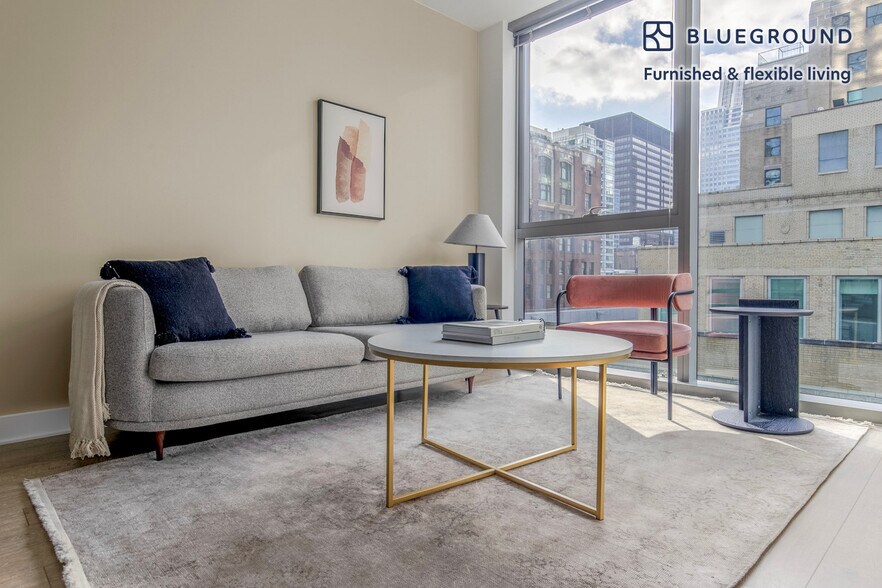 Feel at home wherever you choose to live with Blueground. You’ll love this pretty The Loop furnished one bedroom apartment with its modern decor, fully equipped kitchen, and roomy living room with great high floor views. Ideally located, you’re close to all the best that Chicago has to offer! (ID #CHI1013) The advertised rate of $2,910/month is the lowest available price, based on a 12 month(s) stay with a move-in date of April 7, 2026. Rates vary depending on the duration of stay, season, and other parameters. For exact pricing and additional pricing components, please visit our website and enter your desired move-in and move-out dates. The rate is applicable when billed upfront; it can be higher if billed in multiple payments. Brokers are welcome to reach out. Were you looking for an unfurnished lease? Try Blueground instead and upgrade from unfurnished to furnished living: - Furnished at rates comparable to unfurnished - No setup or furniture costs - save thousands - Move-in ready - save time, just bring your suitcase Designed with you in mind Gorgeous furniture, fully equipped kitchen, smart TV, and a premium wireless speaker are just a few of the amenities you’ll find inside this one bedroom apartment. Ideally located in Chicago, you’ll find a lot to love outside as well. When you’re ready to relax, you’ll be happy to discover every Blueground bedroom comes with superior quality mattresses, fully stocked linens, and cozy towels. We handle everything so you can simply show up and start living. This apartment also offers in-apartment laundry. Sleeping arrangements Queen Bed, 63in/160cm Amenities Building amenities unique to this one bedroom apartment include an on-site: - BBQ Area - Doorman - Dryer - Elevator - Game room - Swimming pool - Washing machine - Lounge - Pets allowed Arrival and ongoing support The entire apartment is yours to enjoy! Throughout your stay, you’ll have access to our Client Experience team through the Blueground App. You can schedule additional cleanings, submit maintenance requests, and view our neighborhood recommendations with just a few taps. We’ll share all details upon confirmation of your stay. Ideally Located This furnished rental is situated in the most dynamic and convenient place to live in Chicago, The Loop. With its endless shopping, fine dining, stunning park, river and lake views, and entertainment opportunities, everything is possible at a moment’s notice. The area is a cultural getaway for professionals and students, who can combine work with pleasure. Discover landmark buildings like the Willis Tower and The Art Institute of Chicago. Millenium Park, near Lake Michigan, is always worth a visit. The Loop is within reach of accessible transportation, offering non-stop public transit, buses, and taxis. Union Station is approximately a 10 minute train ride. Other things to note Building amenities may have an extra cost. This Blueground apartment has flexible lease options, allowing you to book it for one month, a year, or more. Pets are welcome, though weight limits and breed restrictions apply and may incur fees. We take great pride in ensuring every photo displayed is shot in our own units with our actual furnishings. That said, we regularly refresh our decor and furniture arrangement, which may differ from what’s pictured. Also note - This apartment's central location means it can be noisy at times - This apartment is located near a railway, so expect to hear moderate noise when trains pass [SI]