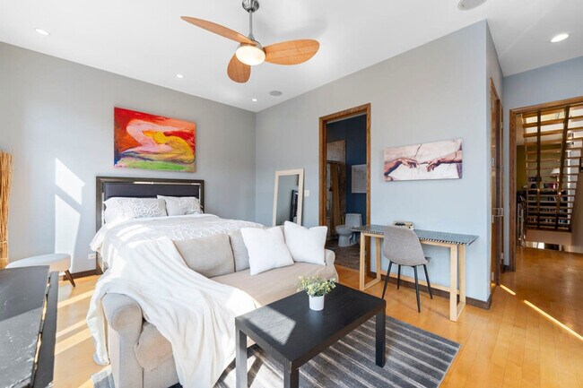 Welcome to this exquisite 5-bedroom executive home, where contemporary luxury meets invigorating positive energy. This spacious haven has been meticulously designed to provide a harmonious blend of upscale comfort and uplifting vibes. As you step into the Zen Oasis of Elegance, you'll immediately feel the difference in ambiance. The interiors have been thoughtfully curated to create an environment that exudes positivity and tranquility. Each of the 5 bedrooms has been tastefully furnished to offer both style and serenity. Sink into plush bedding in rooms adorned with soothing colors and natural textures, ensuring a restful night's sleep. Wake up refreshed and ready to take on the day, as the abundant natural light streams through large windows, filling the space with vitality. The communal areas of the house are equally exceptional. The living room boasts ample seating where you can unwind with friends and family, sharing stories or simply enjoying each other's company. The open-concept kitchen is a chef's dream, equipped with state-of-the-art appliances and ample counter space to prepare culinary delights. Step outside to discover your private sanctuary's a beautiful rooftop over the garage offering a seamless extension of the positive energy within or lounge in the sun on the rooftop of the home. Located in a peaceful neighborhood, this Executive Zen Oasis is still conveniently close to all the attractions the vibrant city has to offer. Whether you're here for business or pleasure, you'll find that perfect balance between a rejuvenating retreat and easy access to urban amenities. Welcome to Pilsen, a vibrant and culturally rich neighborhood nestled in the heart of Chicago. Known for its artistic flair, diverse community, and historical significance, Pilsen offers a unique and immersive experience for residents and visitors alike. Pilsen is a hub of creativity and expression. The streets are adorned with colorful murals and street art that reflect the neighborhood's Mexican heritage and social activism. The National Museum of Mexican Art showcases a stunning collection of Mexican artistry, from traditional to contemporary, capturing the essence of the culture. Food enthusiasts will find Pilsen a paradise of flavors. The neighborhood is dotted with authentic taquerias, family-owned bakeries, and innovative restaurants that fuse global influences with local ingredients. Indulge in mouthwatering tacos, tamales, and freshly baked pan dulce. Pilsen's warm and tight-knit community is a defining aspect of its identity. You'll often find local markets, community gardens, and events that bring neighbors together. Festivals like the Pilsen Fest celebrate the neighborhood's cultural heritage with music, art, and food. Navigating the vibrant streets of Pilsen is a delightful experience that offers various transportation options to suit your preferences. This well-connected neighborhood ensures that you can explore its artistic charm and cultural richness with ease. Pilsen's pedestrian-friendly layout makes it an excellent neighborhood to explore on foot or by bike. The tree-lined streets, colorful murals, and unique architecture create an engaging environment for leisurely strolls and bike rides. Pilsen is well-integrated into Chicago's public transportation system, allowing you to effortlessly access other parts of the city. The CTA Pink Line serves the neighborhood, providing convenient connections to downtown Chicago, major attractions, and other neighborhoods. An array of bus routes crisscross Pilsen, making it convenient to travel locally and beyond. These buses offer a cost-effective way to reach nearby areas and explore the city's diverse offerings. Rideshare services and taxis are readily available throughout Pilsen, offering a flexible mode of transportation for those seeking door-to-door convenience. Use apps to easily hail a ride or arrange for a taxi service. If you prefer the freedom of driving, Pilsen offers easy access to major roadways. Renting a car gives you the flexibility to explore not only the neighborhood but also the greater Chicago area at your own pace. Pilsen also embraces shared mobility services like electric scooters and bike-sharing programs. These options provide an eco-friendly way to move around the neighborhood and beyond. Check-in is at 4pm, and check-out is by 11am. We have a strict no-smoking policy within the property with a $500 fine for violations. To maintain the peaceful environment for all guests, we observe quiet hours outside from 9pm to 7am. The maximum occupancy for the home is 14. Our space is not suitable for parties or events, with a $1,000 fine for violations. Unfortunately, we are unable to accommodate pets at this time. A cleaning fee is included in your reservation. However, guests are expected to leave the property in a reasonable condition. Any excessive cleaning required or damages incurred may result in additional fees. Guests are liable for any damage to the property. Please report any damages noticed at check-in. No tampering with noise monitors or exterior cameras is allowed, with a $500 fine for violations. There are no cameras inside of the home. Please be respectful of neighbors and follow our quiet hours. No additional guests at the home who were not on the reservation. Registration Number: R2 [SI]