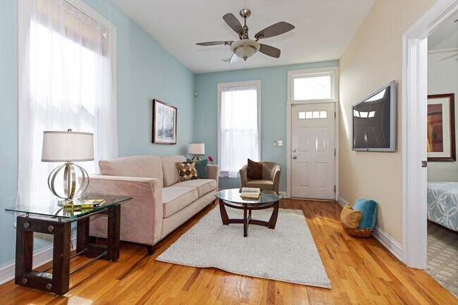Top floor south-facing unit in classic Chicago greystone. This unit features a private back deck that gets loads of sunlight. Spacious living area with large windows allowing bright sunlight to stream in. Modern kitchen with 42" maple cabinets, granite counters, all stainless-steel appliances and undermount sink. Granite breakfast bar with room for stools. Hardwood floors throughout main living area and kitchen (carpet in bedrooms). Two bedrooms, each with closet organizers. Bathroom features maple vanity with granite counters and tub/shower. Central AC. Free laundry and additional storage in basement. Easy street parking. Great location just steps to Humboldt Park (tennis courts, playlot, beach, lagoon, formal gardens, running/walking path). Super easy walk into Bucktown and Wicker Park. Less than 1/2 mile to The 606.