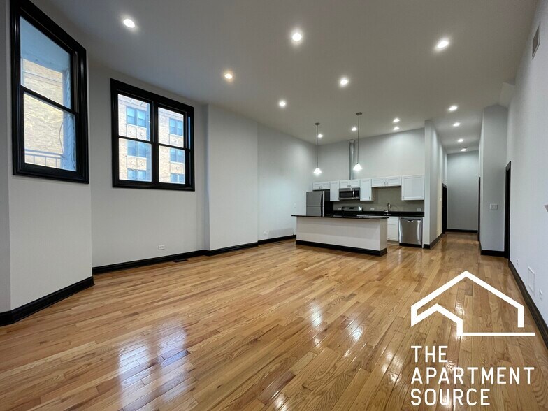 Unique and spacious 2-bedroom apartment in Humboldt Park featuring soaring nearly 12-foot ceilings and an open layout that brings in great natural light. The oversized living area easily accommodates both living and dining setups, anchored by a large 8-foot kitchen island ideal for cooking, hosting, or everyday use. The kitchen includes quartz countertops, stainless steel appliances, and ample cabinet space. Both bedrooms are well-sized, and the unit includes a brand-new in-unit washer and dryer along with central heat and A/C for year-round comfort. Features: 2 bedrooms / 1 bathroom Nearly 12 ceilings (11 10 ) Large 8 kitchen island Quartz countertops Stainless steel appliances In-unit washer/dryer (new) Central heat and A/C Open living space with great natural light Pet-friendly Room Dimensions (approx.): Living Room: 17.5 x 21 Bedroom 1: 10 x 129 Bedroom 2: 109 x 127 Location: Close to Humboldt Park and neighborhood spots including Rootstock W