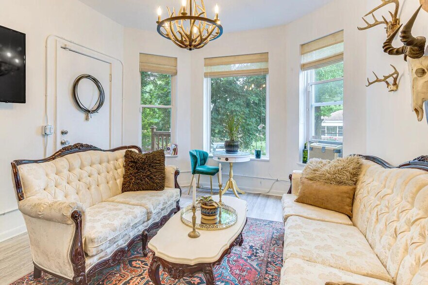 Planning a Windy City getaway? Feel at home in this charming 2-bedroom, 1-bath apartment located just 1 mile from Logan Square. Situated on the 2nd floor, this single-story apartment requires a short climb of 10 steps to enter. Perfect for small families or groups of friends, the apartment offers two living areas, a full kitchen, and a delightful outdoor space for evening relaxation. The apartment features a balcony with a dining area, two living areas with TVs, a record player, a dry bar, books, and board games, as well as two dining tables. The fully equipped kitchen includes a refrigerator, stove/oven, dishwasher, dishware/flatware, cooking basics, spices, a drip coffee maker with coffee provided, and a microwave. Shared complex amenities include coin laundry with detergent provided, a fenced yard, a gas grill with propane provided, and a wood-burning fire pit. Pets are welcome with a $50 fee plus additional fees and taxes. Additional fees and taxes may apply. Enjoy morning strolls along The 606, then head to Logan Square for shopping and dining, or take the Blue Line downtown for sightseeing and museum-hopping. For sports enthusiasts, the United Center is just 4 miles away. Free street parking is available on a first-come, first-served basis. This property features two exterior security cameras on the front porch and back balcony facing the entry areas. These cameras are outward facing and do not look into any interior spaces. Quiet hours are observed from 8:00 PM to 8:00 AM. No smoking, events, parties, or large gatherings are allowed. Guests must be at least 18 years old to book, and a photo ID may be required upon check-in. The apartment offers free WiFi and keyless entry, making it convenient for remote work. Central heating and window A/C units ensure comfort throughout your stay. Registration Number: R2 [SI]