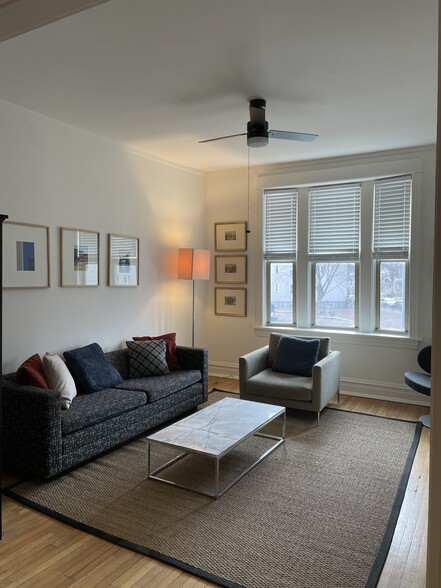 Fully furnished three-bedroom apartment in Avondale - all you need to bring are sheets, your pillow, towels, and your suitcase! Close to stores, restaurants, and public transportation. The apartment is the only residential unit in a two story renovated building. This situation is perfect for a group of recent college graduates or anyone new to Chicago. The second-floor apartment has been renovated with a new kitchen and bathroom shower in 2022. Kitchen includes a refrigerator, dishwasher, stove, oven, microwave and several other appliances including a coffee-maker and electric kettle. Dishes, silverware, cups and glasses are provided. Bedrooms are clean but small, and vintage. Each bedroom comes with a bed frame, mattress, desk, closet and a dresser. There is a washer and dryer in the unit. Electricity and natural gas are metered separately and will be paid by the tenant. The building is clean, quiet, and owned by the architect who works in the ground floor commercial space. There are three hip restaurants within walking distance, and a park immediately across the street. Definitely worth checking out! Available June 1