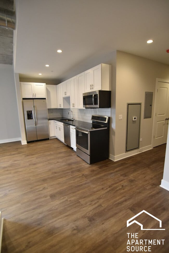 This 1 bedroom 1 bath unit has all of the modern vibes needed in a new high rise construction. It is on the 4th floor, facing east with balcony. The unit has a new modern kitchen with stainless steel appliances. Open plan living with the kitchen easily flowing in to the living area and cute dining nook. LVT flooring, high ceilings and track / recessed lighting. The bedroom will easily accommodate a queen bed and features a massive walk in closet. New modern bath with shower / tub Some of the building features include: - Solar powered energy efficient building that actually heats and cools itself (Geothermal) - Rooftop deck complete with running track, herb garden, BBQ area and outdoor pet area - Heated basement parking garage - Event room with full kitchen - Gym Party room with 360 degree views Just a few blocks from Lake Michigan, DLG is excited to reveal these unique apartments, in a one of kind building, in one of the most sought-after locations in Chicago.
