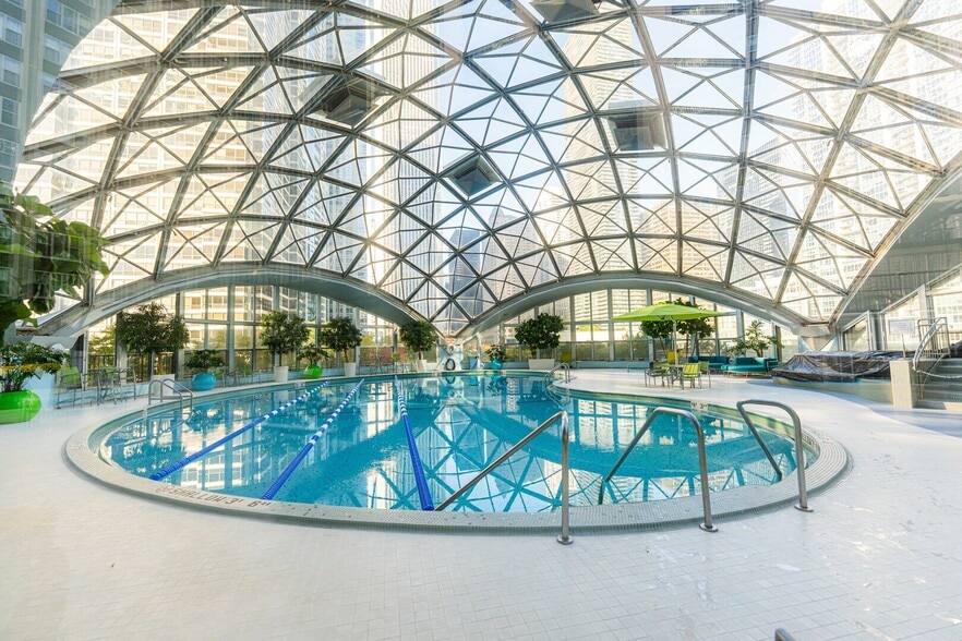- Stunning indoor heated pool under a geodesic glass dome