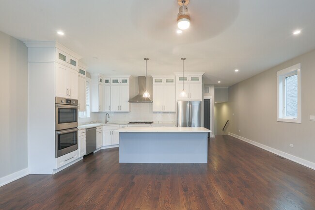 NEW CONSTRUCTION (2021) “condo-quality finishes” apartment in Historic Bronzeville. Sun-drenched stunning chef’s kitchen offers custom 42” designs with soft close cabinets, Bosch Appliances-double ovens, stove top range, dishwasher, large quartz island great for cook space or entertaining! This 3 bed , 2 bath, Office/Den , unit has an open floor plan concept, 11 ft ceilings, Hunter Douglas window treatments, Gorgeous dark-stained oak Hardwood floors, in-unit washer and dryer, private balcony and large roof top deck with views of the Chicago skyline. Expansive Master Bedroom with Spa bathroom and double vanity sinks and Grohe rain shower. plenty of closet space! Additionally amenities: Comelit video intercom access, duel-Heat thermostats, private deck. Exterior security cameras to use to open the gate for scheduled deliveries. The building is quiet and on a one-way street located close to the University of Chicago, many restaurants. Cafes, grocery stores and MORE! Close to the Lakefront and easily accessible to LSD, I90/94 and multiple CTA lines!