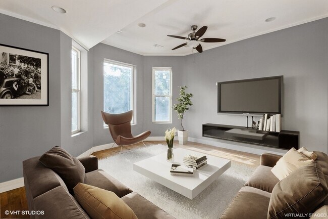 Preferred Estates Presents: Luxurious 3 Bedroom, 2 Bathroom Rental Available Immediately! Welcome to your dream rental home in the heart of Bronzeville! This meticulously renovated 3-bedroom, 2-bathroom unit, situated on the 1st floor, offers an exquisite blend of class, space, and modernity. Key Features: Modern Elegance: Step into a world of sophistication with stainless steel appliances, gleaming quartz countertops, and brand-new soft-close cabinetry. Refined Living: Revel in the warmth of hardwood floors and the comfort of central AC & heating, ensuring a cozy atmosphere year-round. Convenience Redefined: Benefit from the utility room equipped with full-size washer & dryer hook-up and the luxury of walk-in closets. Relaxation Haven: The en-suite bathroom boasts a jetted bathtub, perfect for unwinding after a long day. Outdoor Bliss: Enjoy the outdoors on your private deck, ideal for al fresco dining or morning coffee. Prime Location: Nestled at 49th & Saint Lawrence, this home offers unparalleled convenience. You'll find yourself moments away from the University of Chicago, Illinois Institute of Technology, CTA Green Line, Mariano's, Walmart, and more! Tenant-Focused Amenities: Safety First: Rest easy with 24/hr Emergency Services and a cutting-edge security system. Effortless Management: Simplify your life with online payment and maintenance request resources. Secure Your Dream Home: Don't miss out on this generously sized, comfortable, and stress-free living experience. Contact us at today to secure your unit! Tenant Responsibilities: One-time Move-in Fee Gas & Electric $85 maintenance fee $65 non-refundable application fee per adult applicant Minimum Requirements: No evictions or bankruptcies 650 minimum credit score Minimum net income of 2.5x rent Employment verification and previous references Please note that photos are virtually staged, and no furniture is included. Experience luxury living at its finest schedule a viewing today and make this remarkable rental your own!