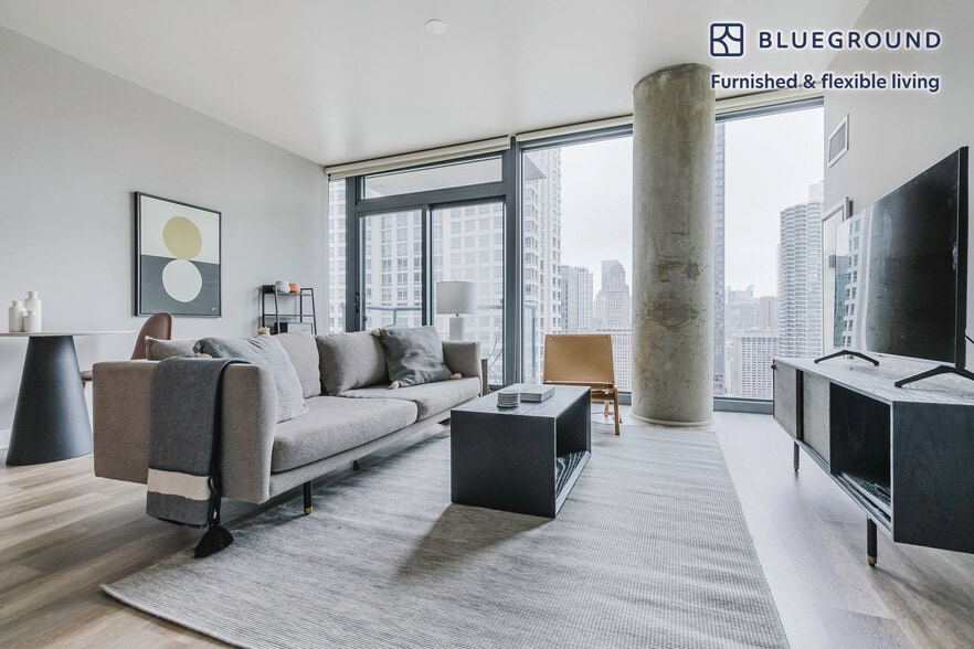 Show up and start living from day one in Chicago with this lovely one bedroom Blueground apartment. You’ll love coming home to this thoughtfully furnished, beautifully designed, and fully equipped Near North Side home with stunning high floor views over the city. (ID #CHI1094) The advertised rate of $3,420/month is the lowest available price, based on a 12 month(s) stay with a move-in date of June 1, 2026. Rates vary depending on the duration of stay, season, and other parameters. For exact pricing and additional pricing components, please visit our website and enter your desired move-in and move-out dates. The rate is applicable when billed upfront; it can be higher if billed in multiple payments. Brokers are welcome to reach out. Were you looking for an unfurnished lease? Try Blueground instead and upgrade from unfurnished to furnished living: - Furnished at rates comparable to unfurnished - No setup or furniture costs - save thousands - Move-in ready - save time, just bring your suitcase Designed with you in mind Thoughtfully designed with bespoke finishes, modern furnishings, and a fully equipped kitchen, you’ll enjoy that “I’m home” feeling with this Blueground apartment. Whether you’re lounging in your comfortable living room streaming the latest and greatest entertainment on the smart TV or premium wireless speaker, or getting some well-earned rest on the superior quality mattress with fully stocked linens, you’ll fall in love with everything this Near North Side apartment has to offer. This apartment also offers in-apartment laundry. Sleeping arrangements Queen Bed, 63in/160cm Amenities Building amenities unique to this one bedroom apartment include an on-site: - Doorman - Dryer - Elevator - Swimming pool - Washing machine - Parking - Pets allowed Arrival and ongoing support The entire apartment is yours to enjoy! Throughout your stay, you’ll have access to our Client Experience team through the Blueground App. You can schedule additional cleanings, submit maintenance requests, and view our neighborhood recommendations with just a few taps. We’ll share all details upon confirmation of your stay. Ideally Located This furnished apartment is located in Chicago's Near North Side neighborhood. Part of the storied Miracle Mile, this thriving neighborhood set on the shore of Lake Michigan is home to some of the city's most notable skyscrapers. The Near North Side has a fabulous dining scene, with everything from Chicago-style pizza to casual pubs to five-star restaurants. Neighborhood highlights include the Museum of Contemporary Art and 360 Chicago, a skyscraper with an observation deck. There's also Navy Pier, a lakefront park with casual dining, dinner cruises and carnival rides. The Near North Side is served by the CTA's Brown, Red and Purple Lines, as well as several bus routes. Other things to note Building amenities may have an extra cost. This Blueground apartment has flexible lease options, allowing you to book it for one month, a year, or more. Pets are welcome, though weight limits and breed restrictions apply and may incur fees. Parking is offered based on availability and is subject to a fee. We take great pride in ensuring every photo displayed is shot in our own units with our actual furnishings. That said, we regularly refresh our decor and furniture arrangement, which may differ from what’s pictured. Also note - This apartment is in close proximity to a fire/police station, so you can expect noise from time to time - This apartment includes access to a private terrace - This is a guarded building equipped with a doorman/concierge at all times [SI]
