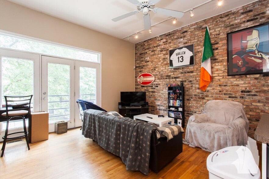Great multi-story townhome with private, garage parking! Walk into mudroom and up one flight to living room, dining room and kitchen combination. Tall ceilings with hardwood floors on this level. Kitchen updated with dishwasher and microwave. Next level is carpeted with 2 bedrooms and drop down ladder to roof top access. HUGE private roof top with lovely views. Town home also offers in-unit washer and dryer, exposed brick and lots of natural light! Available NOW!!! Presented by Fulton Grace Realty, Chicago IL.