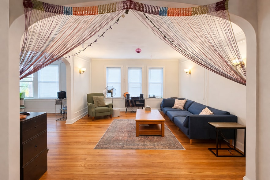 This charming courtyard building in Rogers Park offers a spacious and sun-filled 2-bedroom apartment with heat and WiFi included. The bright, front-facing unit features a separate living room and formal dining room, along with hardwood floors throughout. The kitchen is equipped with white cabinetry and appliances, including a dishwasher. Both bedrooms are generously sized to accommodate queen beds and offer excellent closet space. Additional features include on-site laundry, cable-ready access, and secure intercom entry. Conveniently located with a grocery store on the corner, easy access to public transportation, and situated on a quiet, tree-lined street. Tenant is responsible for cooking gas and electric. Heat, WiFi, and water/trash are included. Application Fee: $75 per person Move-In Fee: $300 per person Pet Policy: Cats welcome – $20/month for one cat or $30/month for two