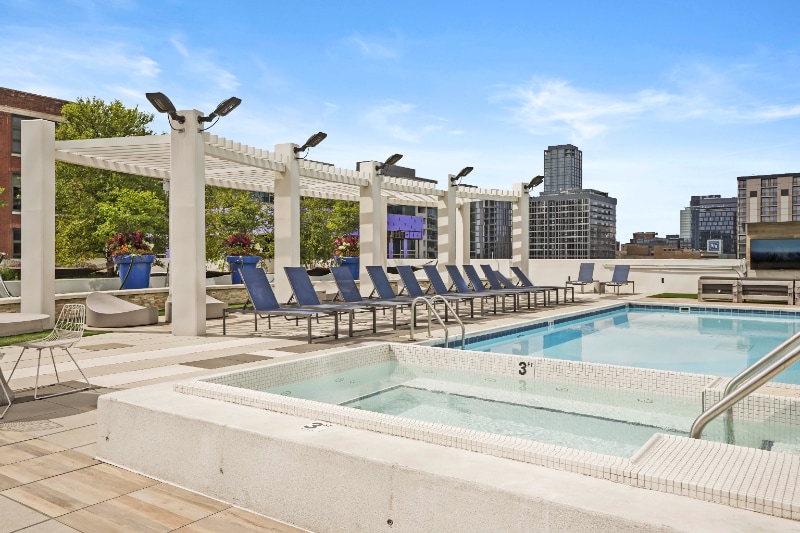 When it comes to blending the work hard/play hard lifestyle, few properties do a better job than this one. With easy expressway access for commuters, and a straight shot into The Loop, getting to work is a breeze. For stay-at-home workers, you'll find a neighborhood vibe only minutes outside of the downtown scene. In either case, this “we-thought-of-everything” building offers world-class amenities, starting with their 360-degree rooftop pool deck that covers more than a half acre! Lounge seating, private grilling stations and a fire pit are all part of the experience. There is also an outdoor yoga studio. Moving indoors, you'll find a full fitness center, resident party room, game room with billiards table and technology lounge with complimentary coffee bar. The building is 100% smoke-free and has a 24-hour door staff.