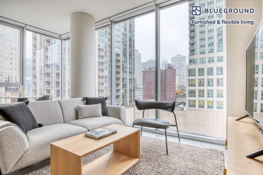 Show up and start living from day one in Chicago with this stylish one bedroom Blueground apartment. You’ll love coming home to this thoughtfully furnished, beautifully designed, and fully equipped Near North Side home with stunning views over the city. (ID #CHI124) The advertised rate of $2,490/month is the lowest available price, based on a 1 month(s) and 29 day(s) stay with a move-in date of February 16, 2026. If you’re looking for a 1-year stay, the rate is $3,250/month. Rates vary depending on the duration of stay, season, and other parameters. For exact pricing and additional pricing components, please visit our website and enter your desired move-in and move-out dates. The rate is applicable when billed upfront; it can be higher if billed in multiple payments. Brokers are welcome to reach out. Were you looking for an unfurnished lease? Try Blueground instead and upgrade from unfurnished to furnished living: - Furnished at rates comparable to unfurnished - No setup or furniture costs - save thousands - Move-in ready - save time, just bring your suitcase Designed with you in mind Gorgeous furniture, fully equipped kitchen, smart TV, and a premium wireless speaker are just a few of the amenities you’ll find inside this one bedroom apartment. Ideally located in Chicago, you’ll find a lot to love outside as well. When you’re ready to relax, you’ll be happy to discover every Blueground bedroom comes with superior quality mattresses, luxury linens, and cozy towels. We handle everything so you can simply show up and start living. This apartment also offers in-apartment laundry. Sleeping arrangements King Bed, 70.8in/180cm Amenities Building amenities unique to this one bedroom apartment include an on-site: - BBQ Area - Doorman - Dryer - Elevator - Swimming pool - Washing machine - Lounge - Pets allowed Arrival and ongoing support The entire apartment is yours to enjoy! Throughout your stay, you’ll have access to our Client Experience team through the Blueground App. You can schedule additional cleanings, submit maintenance requests, and view our neighborhood recommendations with just a few taps. We’ll share all details upon confirmation of your stay. Ideally Located This furnished apartment is located in Chicago's Near North Side neighborhood. Part of the storied Miracle Mile, this thriving neighborhood set on the shore of Lake Michigan is home to some of the city's most notable skyscrapers. The Near North Side has a fabulous dining scene, with everything from Chicago-style pizza to casual pubs to five-star restaurants. Neighborhood highlights include the Museum of Contemporary Art and 360 Chicago, a skyscraper with an observation deck. There's also Navy Pier, a lakefront park with casual dining, dinner cruises and carnival rides. The Near North Side is served by the CTA's Brown, Red and Purple Lines, as well as several bus routes. Other things to note Building amenities may have an extra cost. This Blueground apartment has flexible lease options, allowing you to book it for one month, a year, or more. Pets are welcome, though weight limits and breed restrictions apply and may incur fees. We take great pride in ensuring every photo displayed is shot in our own units with our actual furnishings. That said, we regularly refresh our decor and furniture arrangement, which may differ from what’s pictured. Also note - This apartment faces the street - This apartment's central location means it can be noisy at times - This is a guarded building equipped with a doorman/concierge at all times [SI]