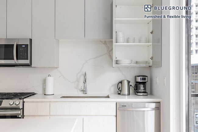 Show up and start living from day one in Chicago with this cozy one bedroom Blueground apartment. You’ll love coming home to this thoughtfully furnished, beautifully designed, and fully equipped Greektown home. (ID #CHI1253) The advertised rate of $2,970/month is the lowest available price, based on a 12 month(s) stay with a move-in date of March 24, 2026. Rates vary depending on the duration of stay, season, and other parameters. For exact pricing and additional pricing components, please visit our website and enter your desired move-in and move-out dates. The rate is applicable when billed upfront; it can be higher if billed in multiple payments. Brokers are welcome to reach out. Were you looking for an unfurnished lease? Try Blueground instead and upgrade from unfurnished to furnished living: - Furnished at rates comparable to unfurnished - No setup or furniture costs - save thousands - Move-in ready - save time, just bring your suitcase Designed with you in mind As with any Blueground apartment, you’ll find a thoughtfully designed space complete with beautiful furniture and a fully equipped kitchen in this one bedroom property. And, thanks to our superior quality mattresses, luxury linens, and towels, you can relax knowing you’ll always feel comfortably at home. When you’re ready for some fun, you can take in the Chicago vibes or bring the entertainment to you with the premium wireless speaker or smart TV. This apartment also offers in-apartment laundry. Sleeping arrangements Queen Bed, 63in/160cm Amenities Building amenities unique to this one bedroom apartment include an on-site: - BBQ Area - Dryer - Elevator - Washing machine Arrival and ongoing support The entire apartment is yours to enjoy! Throughout your stay, you’ll have access to our Client Experience team through the Blueground App. You can schedule additional cleanings, submit maintenance requests, and view our neighborhood recommendations with just a few taps. We’ll share all details upon confirmation of your stay. Other things to note Building amenities may have an extra cost. This Blueground apartment has flexible lease options, allowing you to book it for one month, a year, or more. We take great pride in ensuring every photo displayed is shot in our own units with our actual furnishings. That said, we regularly refresh our decor and furniture arrangement, which may differ from what’s pictured. Also note - This apartment's central location means it can be noisy at times - Building requires 48h to confirm the booking and validate the required documents [SI]