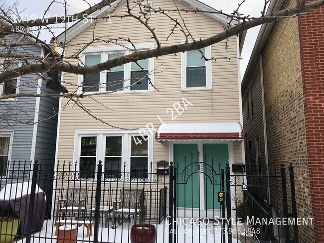 ---- SCHEDULE A SHOWING ONLINE AT: ---- PILSEN: 1749 W 19th St, 1st Floor - Renovated 4BR/2BA duplex down with spiral staircase. Heart of Pilsen, located close to Harrison Park, 18th St. shopping & restaurants, and the CTA Pink Line! Features an eat-in kitchen with stainless steel appliances (refrigerator, stove, dishwasher, microwave), two modern baths, hardwood floors throughout, central heat and ac, in-unit laundry, large, fenced-in patio, garage parking included, and so much more!. Pets negotiable w/ extra fee. No security deposit. Available May 1st. Check out the video tour here! Living room: 10 x 12 Kitchen: 10 x 10 Bedroom: 9 x 9 Bedroom: 9 x 9 Bedroom: 9 x 9 Bedroom: 9 x 9 Bathroom: 7 x 9 – Shower stall Bathroom: 7 x 7 – Shower stall $75 credit/background check per adult (No bankruptcies or evictions accepted – 600+ credit scores needed per applicant). First month’s rent and $500 move-in fee due at lease signing. (No security deposit.) One year lease. One pet okay – cat or small dog – for additional fee. Tenant pays electric, heat, and gas plus $40 monthly tenant benefit package* and $100 admin fee due at lease signing. * Tenant Benefit package includes multiple payment options for rent, 24/7 maintenance line, online portal, furnace filters delivered to tenant’s door (where applicable), free expert home-buying assistance (and a $500 rebate when tenants buy with one of Chicago Style Management’s preferred agents), one late fee or NSF fee waived per year, no annual renewal fee, one-time waiver for missed inspection or maintenance trip charge, tenants’ reward program (powered by Piñata), annual inspections to ensure unit maintenance is up to date, concierge utility setup. The accuracy of all information, regardless of source, including but not limited to square footage and lot sizes, is deemed reliable but not guaranteed and should be personally verified through personal inspection by an/or with the appropriate professionals.