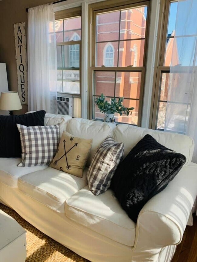 ---- SCHEDULE A SHOWING ONLINE AT: ---- PRIME top floor corner unit with tons of windows overlooking Downtown Elgin. This cozy studio is nestled in an historic 1938 art deco building that has been recently restored. Newer kitchen cabinets and appliances and an all new ceramic bathroom with subway tiled shower. There are all new windows and gleaming original hardwood floors throughout. Large walk in closet, and free basement storage unit if needed. Rent is just $1085 plus $85 monthly for all utilities/WiFi= $1170 total including gas, heat, water, sewer, trash, WiFi, and private parking onsite too! You pay the light bill only. Call and enter #114 for a showing or visit Get in early, these go fast! Cats are welcomed, no dogs allowed. This beautifully renovated Downtown building has parking on site and EVERYTHING is close by! Gorgeous new windows recently installed.