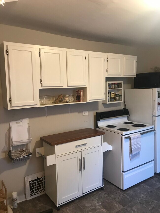 2 bedroom apartment in upstairs unit of duplex. Cats are allowed with pet fee. No dogs. It's ready now, come take a look but get in early, our places rent quickly. Situated next to the heart of Downtown Elgin, you'll have easy access to a vibrant community with diverse dining options, cultural attractions, and entertainment. Enjoy the convenience of being steps away from local shops, parks, the rec center and library. Off-street parking included. Reach out to confirm tenant qualifications and schedule a showing. 1 year lease minimum. Must have verified income of 3 times monthly rent. This one is $1370 and $85 covers all utilities except electric. $1455 total monthly and $1455 deposit is required. It's ready now, come take a look but get in early, our places rent quickly. Previous landlords and current employers to be verified.