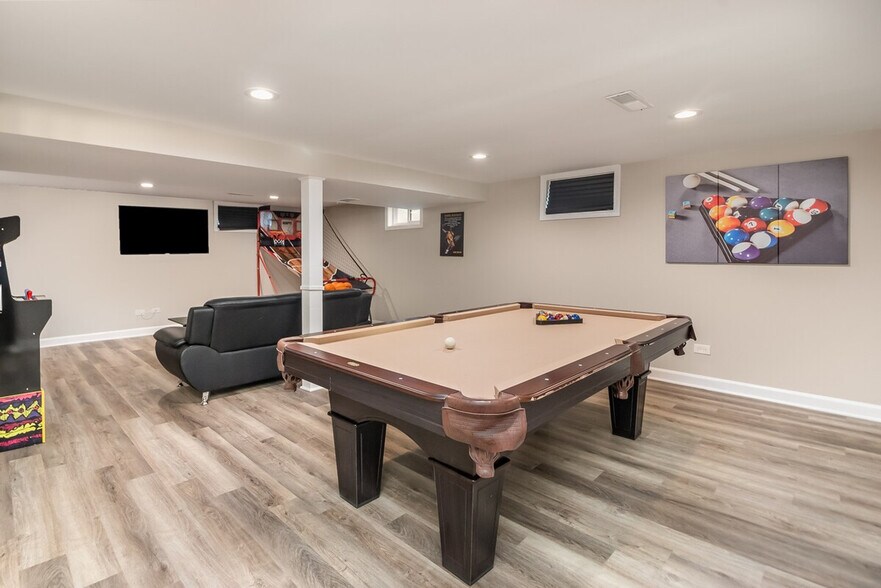 The advertised rate of $16,910/month is the lowest available price, based on a 30 day(s) stay with a move-in date of July 24, 2026. Rates vary depending on the duration of stay, season, and other parameters. For exact pricing and additional pricing components, please visit our website and enter your desired move-in and move-out dates. The rate is applicable when billed upfront; it can be higher if billed in multiple payments. Feel at home in this renovated 2100 sq ft unit, located 7-9 minutes from Interstate 90, providing easy access to O'Hare Airport and downtown. This home features 4 bedrooms and 2 full bathrooms. The updated home, renovated in 2021, features a modern kitchen with updated flooring. It is equipped with plenty of kitchen utensils, including cooking spices and oils. For entertainment, the basement offers darts, a 2-player electronic basketball game, an arcade cabinet with 2,000 classic games, a pool table, and ping pong. There is also a lounge area with a sofa and TV, as well as cards and board games. Technology amenities include 6 LCD televisions with access to Hulu, Disney, and ESPN streaming services (English and Spanish), Netflix and Prime Video access (using your own login), up to 300 MBPS internet speed with ethernet hard line available, and Wi-Fi throughout the entire home. The living area and lounge area have a 55" TV, and all 4 bedrooms have 40" TVs. A sound bar is provided in the living room. Also included are a pack & play sleeper, a stroller, a high chair, and a booster seat. Premium amenities include 10+ cooking spices and 3 types of cooking oils. This property offers 2-car garage parking, driveway parking, and public parking. The 4th bedroom (lower level) does not have a window. Exterior security cameras are on site. Pets must be approved and disclosed upfront, and the traveler is responsible for non-refundable carpet/upholstery cleaning upon check-out. A copy of a valid government-issued ID must be submitted before electronic access codes are issued. All loose trash must be placed in garbage bags, and a $250 fine applies if any loose trash is found inside a garbage bin/can. Renters should report all observed damage within 8 hours of checking in to avoid liability. [SI]