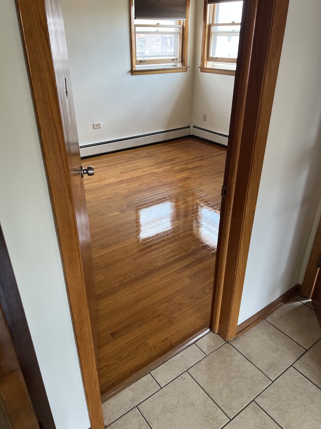 Nice three bedroom apartment with large eat in kitchen, full bath plus additional half bath, large closets, hardwood floors, one parking space at rear, laundry in basement, close to schools and transportation. Tenant pays gas and electric