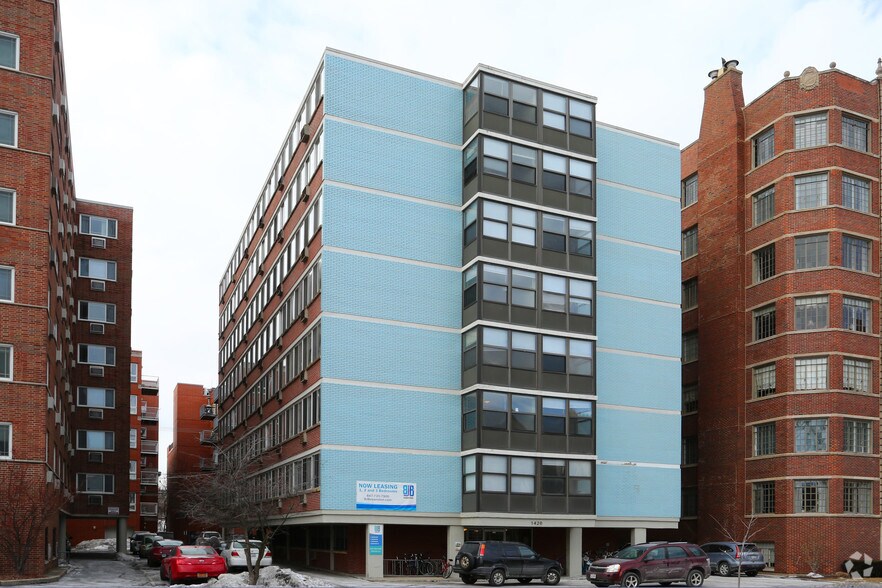 An extension of the Windy City's legendary Clark Street, Chicago Avenue is the central north/south road that connects Main and Dempster Streets, and downtown Evanston and Northwestern. Once dotted with the sameness of auto dealerships, it is now host to a wonderful array of shopping and dining. It's also where you'll discover 1420, a cool blend of newly renovated apartments behind an unmistakable blue brick facade (termed The Blue Whale by Northwestern students). Take a deep breath, because you're gonna flipper for this vintage 1950s residence offering newly renovated rental homes with generous floor plans and oversized windows. Great spaces that blowholes the lid off apartment living with hardwood floors, ample closets and kitchen with dishwasher, not to mention a brand spanking new laundry room and fitness center, on-premise parking and amenities such as Internet and DirecTV Family