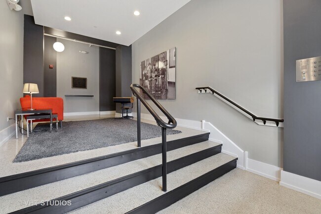 One of the coolest places to live in downtown Libertyville! Loft Living in Historic Central School building. Two Bed, Two Bath second floor condo! Soaring industrial ceilings! Enormous wall of gorgeous windows. Huge open floor plan. Maple Cabinets. Granite Counters. Stainless Appliances. Two parking spots 8 & 9. Includes: water, trash, stackable washer/dryer, snow removal, lawn care, exterior maintenance & mailroom. Available now! Just cleaned!