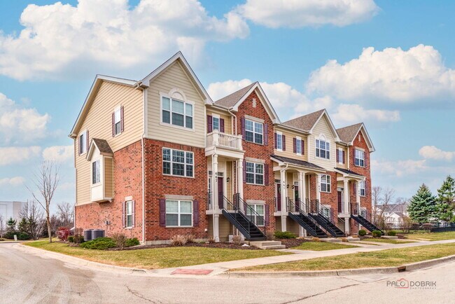 This stunning three-bedroom,two-and-a-half-bathroom,three-story,end-unit townhome in the desirable Lake Ridge Townhome subdivision of Mundelein offers a sleek,contemporary design throughout. The main level features an open-concept layout highlighted by a modern kitchen with gray Shaker cabinetry,stainless steel appliances,and a breakfast bar overlooking the dining area. The dining room flows seamlessly into the living room,creating an ideal space for both everyday living and entertaining. Gleaming,heated tile flooring enhances the home's clean,contemporary aesthetic. A sliding glass door off the living room leads to a private deck with pond views. Upstairs,you are welcomed by illuminated stair treads and hardwood flooring throughout the bedroom level. The spacious primary suite includes a walk-in closet and an ensuite bathroom with gray Shaker cabinetry and a walk-in shower with clear glass doors. Two additional bedrooms,a full hall bathroom,and a convenient laundry closet with a front-load washer and dryer complete this level. The lower level offers a versatile space,perfect for a home office,featuring built-in shelving. The attached two-car garage includes an electric vehicle charger. Ideally located near restaurants and shopping,this property is available for immediate occupancy with a one-year lease. MLS# MRD12611866