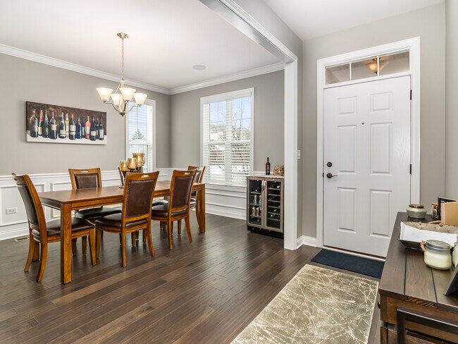 Amazing opulent duplex for rent in highly desirable Dist. 203 with Naperville Central High School and Kennedy Jr. High. This unit will not disappoint! From the moment you walk in you'll notice all the hardwood floors throughout entire first floor. The attention to detail is worth noting, with the wainscoting and crown molding in the formal dining room, to the perfect chefs kitchen with 42 dark espresso upper cabinets, granite, built in range top with built in microwave & oven and white subway tile. The family room with vaulted ceilings his the perfect place to cuddle up in front of the fireplace and watch the snow come down with some hot coca, or host the Sunday game! The oversized first floor master bedroom with the upgraded bathroom double vanity sinks and ceramic tile, with a soaking tub and frameless shower door will make you never want to leave the master suite! While walking upstairs you'll notice the wrought iron spindles and appreciate the oversized loft that's a great area for video gaming or a play area. Both bedrooms upstairs are great for everyone person and closet space is endless and a shared bathroom with dual vanities can accommodate both rooms. The 280 sq. ft. 2nd floor bonus room makes for an ideal office space, possible 4th bedroom or an extended play room and extra storage in the full unfinished basement!"