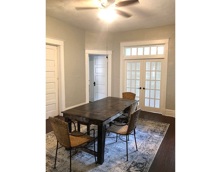 1507 Callender is a gorgeous Victorian house with an attractive and spacious wrap around front porch. It's a duplex, which means it has two separate 3 bedroom apartments, but we usually rent this house as one 6 bedroom house as it has an interior staircase connecting the units. This lower duplex has hardwood flooring, 3 bedrooms, 1 bathroom, dining room and living room. A large, updated kitchen with stainless steel appliances and plenty of storage cabinets. The house comes with window AC units and has a new efficient furnace. The house has a large front porch and good sized yard.