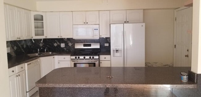 Luxury condo on the top floor. Two bedrooms with hardwood floors and ceramic tiles in the kitchen. The kitchen is white and spacious.