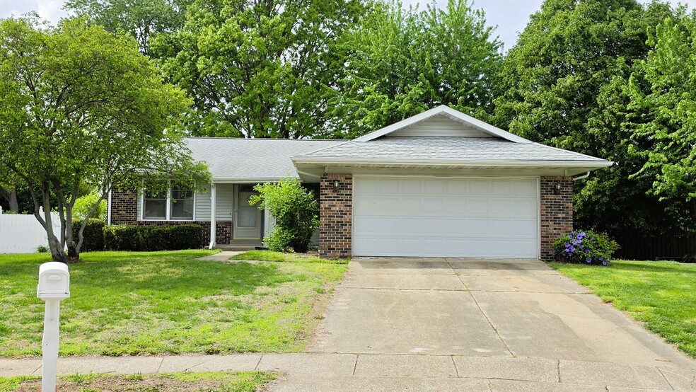 Don't be fooled by the front exterior! This very charming 4 bedroom, 3 bath ranch with a 2 car garage opens up and is conveniently located near Veteran's Pkwy in a small cul-de-sac. Family room, dining room, kitchen, and master bedroom have cathedral ceilings. Dining area leads to back patio which is shared by master bedroom. Third bedroom would also make an ideal den, office, or nursery. Laundry room has storage and an electric hook-up for a dryer. Large backyard is fenced and has a shed. Extra storage in the garage and is equipped with a garage butler.