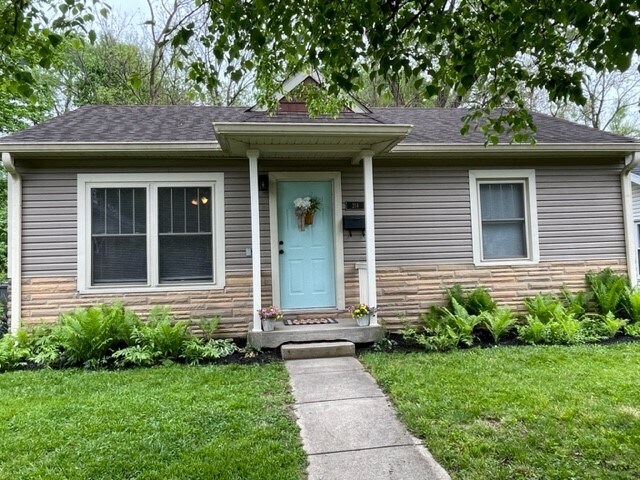 Cute and cozy two bedroom bungalow with front portico and custom rear deck with built in seating. This home features central air, hardwood floors, newer windows, gas stove, washer/dryer and ceiling fans. Custom kitchen with tile backsplash, granite tops, stainless appliances, farmhouse sink, recessed lighting, dishwasher, disposal, built in microwave and tile floors. This property has a fenced yard and a storage shed. Free on street parking All new plumbing, wiring, and attic insulation summer of 2023. High speed internet is available. The bedrooms are 13 x 8'8" and 9'6" x 9'9". Located a mile and a half south of the IU campus and in between Bryan Park and the all new Switchyard Park. Walk to Starbucks and local eateries. Walk, jog or bike the B-line trail for miles! Enjoy all the sports facilities, concerts, Parks & Rec.programs, trails, pavilion and the Farmer's Market right across the street at Switchyard Park. Mature and respectful neighbors on this quiet street. No smoking, Utilities not included
