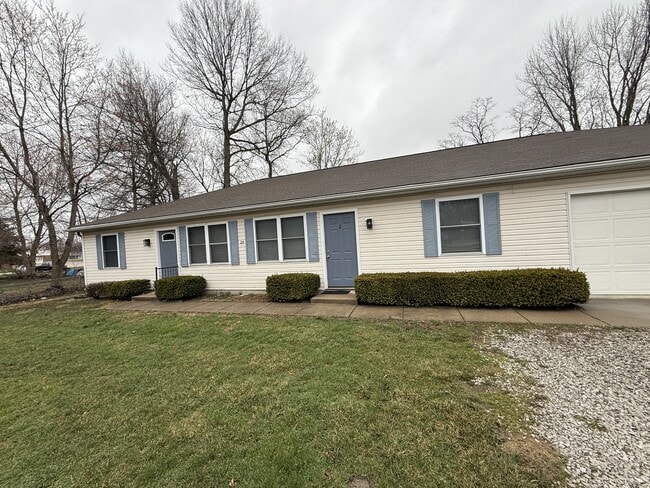 Quaint one-level duplex apartment includes a one car garage + storage. Brand new deck (not pictured). Updated. Easy to care for vinyl plank flooring. All electric energy efficient. Central AC. Dining space with french doors opening to the deck. Full sized WD hook ups. Blinds. Attentive owners and maintenance staff. Lawn care is provided. This property is located one mile north of downtown. Enjoy the perks of small town life. Just a short commute to Indy's metro area, Terre Haute, and Greencastle.