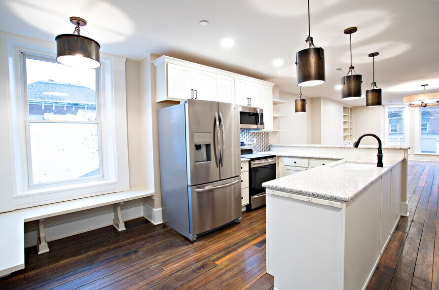 This historic building, built approximately in 1856, is located on the historic US 40 National Road. There are restaurants, shopping, a grocery, and a park within walking distance. The building has had many uses through the decades. The first floor currently has a pharmacy and a doctor's office and the second and third floors have luxury apartments that were completed in 2021. Off street private parking is available. The apartments are accessed by a secure entrance.