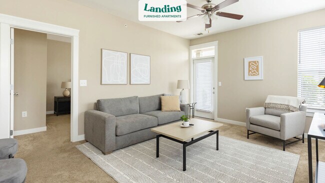 Landing offers flexible lease terms from weeks to months. Please always visit our website or contact us for the latest pricing & availability. Stay longer, save more: 6-Month Minimum base rent: starts at $2094/mo 12-Month Minimum base rent: starts at $2094/mo Landing offers flexible leases across a network of over 35,000 fully-furnished apartments throughout 375+ cities so you can rent on your terms, practically anywhere, and avoid the hassle of paying deposits or application fees. Visit to learn about all the benefits of a Landing membership, see our competitive up-to-date pricing, explore available apartments, take virtual tours, and make reservations online without jumping through traditional rental hoops. Landing's apartments at The District at Saxony II are designed for comfortable, easy living, with the ability to stay as long as you like. Experience living with Landing Every apartment is outfitted with all the modern essentials including: custom-designed furnishings, a fully-equipped kitchen with deluxe stainless steel appliances, a gourmet coffee maker, premium linens, Smart TVs, and incredibly fast, reliable internet for working from home. When you live with Landing, you'll enjoy a hassle-free experience with the added benefit of 24/7 access to our dedicated member experience team. Some of the nitty-gritty: a background check and proof of income are required; we're completely smoke-free; bundled utility packages and pricing vary based on length of stay; pet-friendly options available; listed price reflects a 12-month minimum stay.