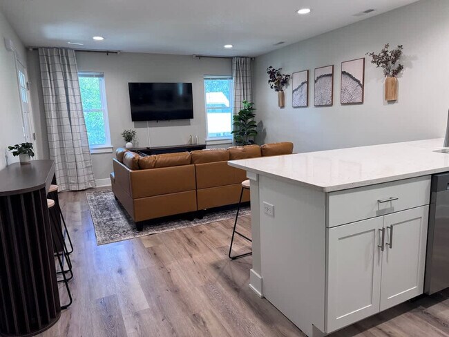 Feel at home in this bright 3-bedroom, 2-bathroom upper-level duplex with balconies at the front and back. This 2024 build sleeps 8 and offers elevated views and added privacy. Kinsmoor Flats 201 features a fully stocked kitchen with stainless steel appliances, TVs in the living room and in the queen and king bedrooms, a Connect 4 wall game in the bunk room, central air conditioning and heat, and free Wi-Fi. Well-behaved pets are allowed with prior approval and a fee of $50 per pet per stay. Enjoy quick access to downtown Fort Wayne, Parkview Field, Promenade Park, Rivergreenway trails, and breweries. As with many duplexes, you may hear normal household sounds from the neighboring unit below. Check-in is at 4:00 PM and check-out is at 11:00 AM. Late check-outs beyond 30 minutes without prior approval will incur a $300 fee. Smoking inside the home, including vaping and cannabis, will result in a $250 cleaning fee. Only guests included in the reservation are permitted on the property unless approved in advance; additional unregistered guests may incur a $100 per person per night fee. Quiet hours are from 10:00 PM to 8:00 AM. Tampering with security devices is strictly prohibited and will result in cancellation without refund. Any violation of the house rules may result in additional charges, removal from the property without refund, and/or reporting. [SI]