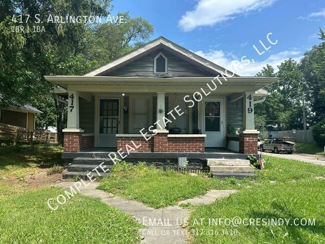 Indianapolis: Arlington & Washington 1 Bedroom, 1 bath ranch duplex with living room, dining room, kitchen and basement. Interior Features include: Laundry hook-up in basement Exterior Features Include: Shared detached garage, Covered front porch, Screen door Appliances Included: Refrigerator (Note: Appliances are not warranted, no maintenance will be provided) Central Air: No Lease Terms: 12 month lease required Sorry No Pets Utilities: Utility Information: ALL ELECTRIC Tenant Pays: All Utilities plus $50 for water billed monthly by property manager All Complete Real Estate Solutions residents are enrolled in the Resident Benefits Package (RBP) for $40.00/month which includes liability insurance, credit building to help boost the resident’s credit score with timely rent payments, up to $1M Identity Theft Protection, HVAC air filter delivery (for applicable properties), move-in concierge service making utility connection and home service setup a breeze during your move-in, our best-in-class resident rewards program, and much more! More details upon application. This home does not accept section 8 Contact: For more information or to schedule a showing contact us at or email See other listings at ***Like us on FACEBOOK by going to Schedule a Showing Anytime Information Deemed Reliable, but not Guaranteed