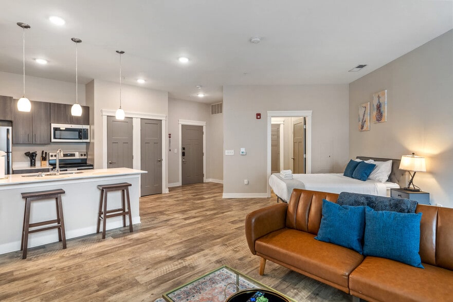 Feel at home in this studio apartment centrally located in the heart of Mass Ave, designed for the modern traveler. This studio apartment features inviting living areas, a fully equipped kitchen, and a bathroom complete with toiletries. You can also enjoy the outdoor pool, fitness center, in-unit washer and dryer, smart TV with streaming apps installed, complimentary coffee, and a TV in the living room. A pet fee may be charged for guests traveling with an emotional support animal. An additional pet fee between $100 and $300, based on stay length, will be collected separately for a maximum of 2 pets (40lbs combined), excluding Pit Bulls and Bull Mastiffs [or similar breeds]. Located in the heart of the vibrant Mass Ave Cultural District, this area is known for its walkability, eclectic dining, art galleries, theaters, and boutique shopping. With a lively atmosphere and historic charm, it's the perfect spot to explore the best of downtown Indianapolis, all just steps from your door. The Indiana Convention Center is 0.3 miles away, Lucas Oil Stadium is 0.5 miles away, Old National Centre is 0.6 miles away, Phoenix Theatre is 0.7 miles away, and Saint Mary's Catholic Church is 0.6 miles away. This is a smoke-free environment, and any sign of smoking is a violation of the stay agreement, which may result in immediate termination and recovery fees beginning at $500. There is a $200 penalty for removing smoke detectors and a $200 penalty for lost key fobs. No outside guests are allowed without permission. Quiet hours are observed from 9pm-8am each day, and guests must agree not to disturb neighbors at any time during the stay. Check-in is at 4 PM, and check-out is at 11 AM, with a $75/hr late fee. To abide by all legal requirements and HOA rules, you will be asked to provide a copy of your official government-issued photo ID, confirm your contact information, and pass through our verification portal. In some instances, you may be required to complete a criminal background check. No weapons or drugs are allowed, and any violation of this rule will result in the police being called. Long-term guests (30 days+) will be subject to a background search and credit check. One towel is provided per guest per stay. The minimum age requirement for the primary person booking is 22 years old for out-of-town guests and 25 years old for local guests. [SI]