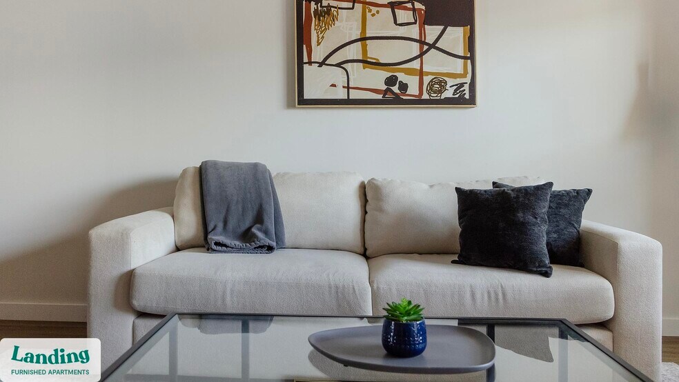 Landing offers flexible lease terms from weeks to months. Please always visit our website or contact us for the latest pricing & availability. Stay longer, save more: 6-Month Minimum base rent: starts at $2018/mo 12-Month Minimum base rent: starts at $1786/mo Landing offers flexible leases across a network of over 35,000 fully-furnished apartments throughout 375+ cities so you can rent on your terms, practically anywhere, and avoid the hassle of paying deposits or application fees. Visit to learn about all the benefits of a Landing membership, see our competitive up-to-date pricing, explore available apartments, take virtual tours, and make reservations online without jumping through traditional rental hoops. Landing's apartments at The Landing are designed for comfortable, easy living, with the ability to stay as long as you like. Experience living with Landing Every apartment is outfitted with all the modern essentials including: custom-designed furnishings, a fully-equipped kitchen with deluxe stainless steel appliances, a gourmet coffee maker, premium linens, Smart TVs, and incredibly fast, reliable internet for working from home. When you live with Landing, you'll enjoy a hassle-free experience with the added benefit of 24/7 access to our dedicated member experience team. Some of the nitty-gritty: a background check and proof of income are required; we're completely smoke-free; bundled utility packages and pricing vary based on length of stay; pet-friendly options available; listed price reflects a 12-month minimum stay.
