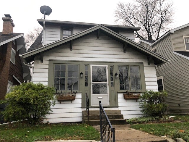 House features an enclosed front porch, hardwood floors, fenced in back yard, central air, detached garage, back deck and full basement.