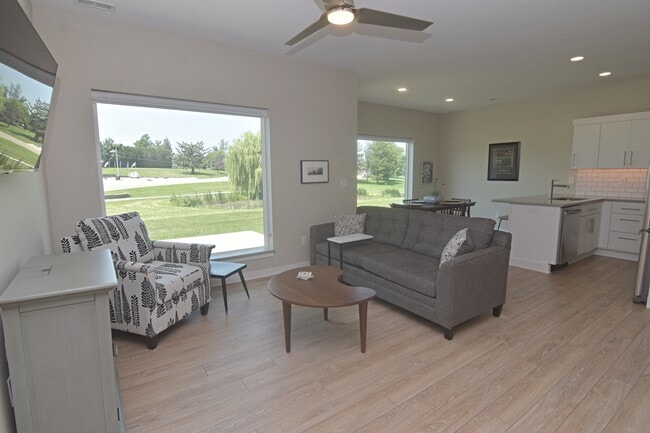 Luxury 3 bedroom townhome with stunning views of the Legion Golf Course. This townhome offers 2.5 bathrooms, modern and open concept living, back patio and deck, and so much more! Features main floor half bath, concrete patio, second story deck, and full-size washer and dryer as well as attached 2 stall garage. Garages have option to be heated as well and offer a plug in for electric cars. Great spot next to golf course and dining. Ask about furnished options! No smoking and no pets allowed. Garbage service included. Lawn and snow care provided as well as outside maintenance.
